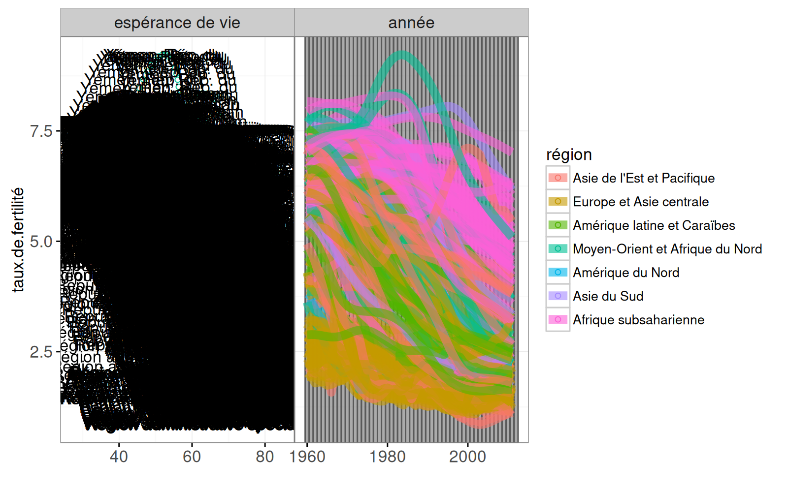 x=année, y=taux.de.fertilité, group=pays, color=région),