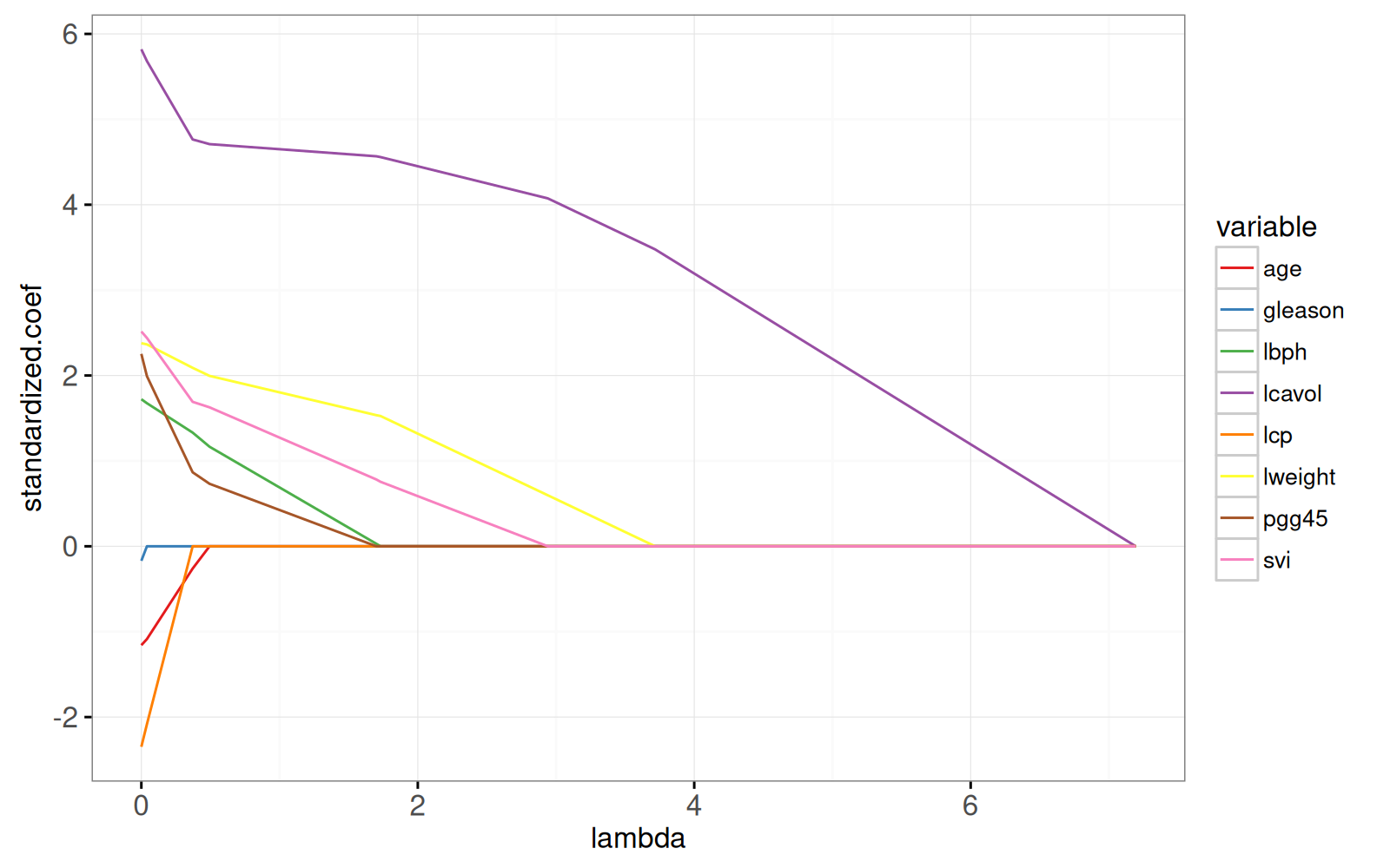 "lcavol", "lweight", "age", "lbph", "svi", "lcp", "gleason",